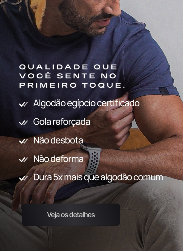 Produzida com algodão egípcio certificado e elastano, entrega toque macio, respirabilidade e um caimento ajustado ao corpo, ideal para o uso diário.